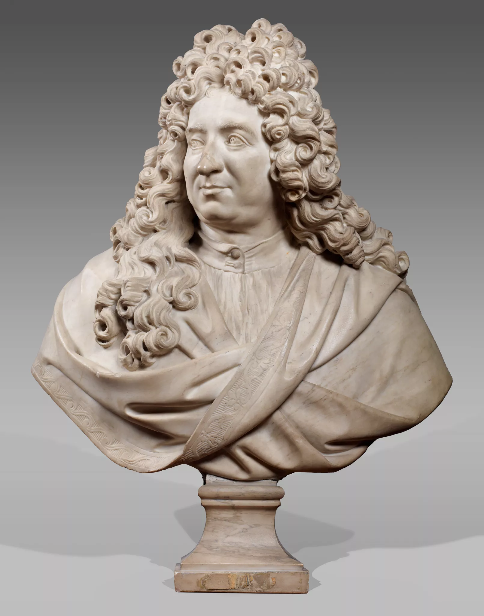 Antoine Coysevox was the greatest French sculptor at the end of the reign of Louis XIV. A talented portraitist, he became famous for his ability to portray the subject’s personality in marble. Given the absence of his sitter, as he had been dead for twenty-five years at the time the work was executed, the artist’s work is singularly remarkable.